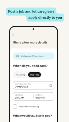 • Find caregivers for full-time, part-time, or occasional help