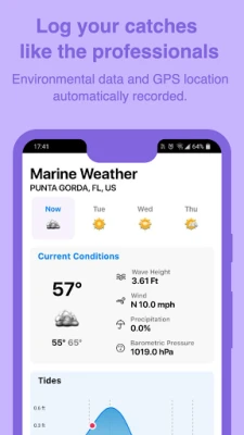 • MARINE WEATHER – Real-time conditions including wind, air & water temperature, moon phase, tides, pressure, and more.