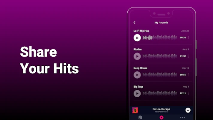 Our beat making app will teach you to create your own songs and play different music tracks. Just choose your favorite genres and tap on the pads to make beats and create music! Experiment, mix styles, create incredible melodies and master your beat making skills step by step with Groovepad.
