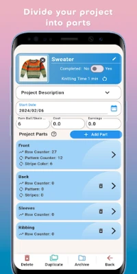 Start and finish your knitting and crochet projects effortlessly with our row counter app and organize your projects. It offers advanced row counting, pattern PDF browsing, and project management features, making each stitch more enjoyable.