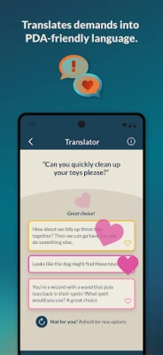Our advanced technology translates everyday demands into PDA-friendly language, reducing resistance and fostering smoother interactions.