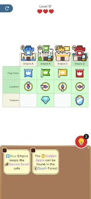 Put your deduction skills to the test in this addictive grid-based puzzle game inspired by the world-famous Einstein’s Riddle. Every level challenges you to match clues to the correct subjects — and no two puzzles are ever the same!