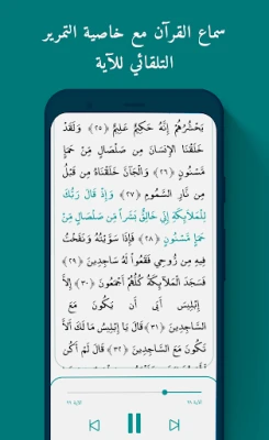 ٢- سماع القرآن الكريم مع خاصية التمرير التلقائي للآية